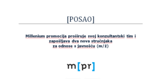 [POSAO] Millenium promocija proširuje svoj konzultantski tim i zapošljava dva nova...